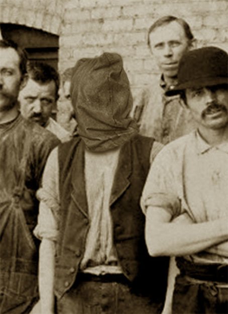 Longtime readers of these archives will be gratified to note this historic photo shows (left to right) Mookie Moustrap, Cuthbert “Mad Dog” Maddox, Kalamity Dick and Kid Sheleen forefront at the bar. Others may identify their companions.