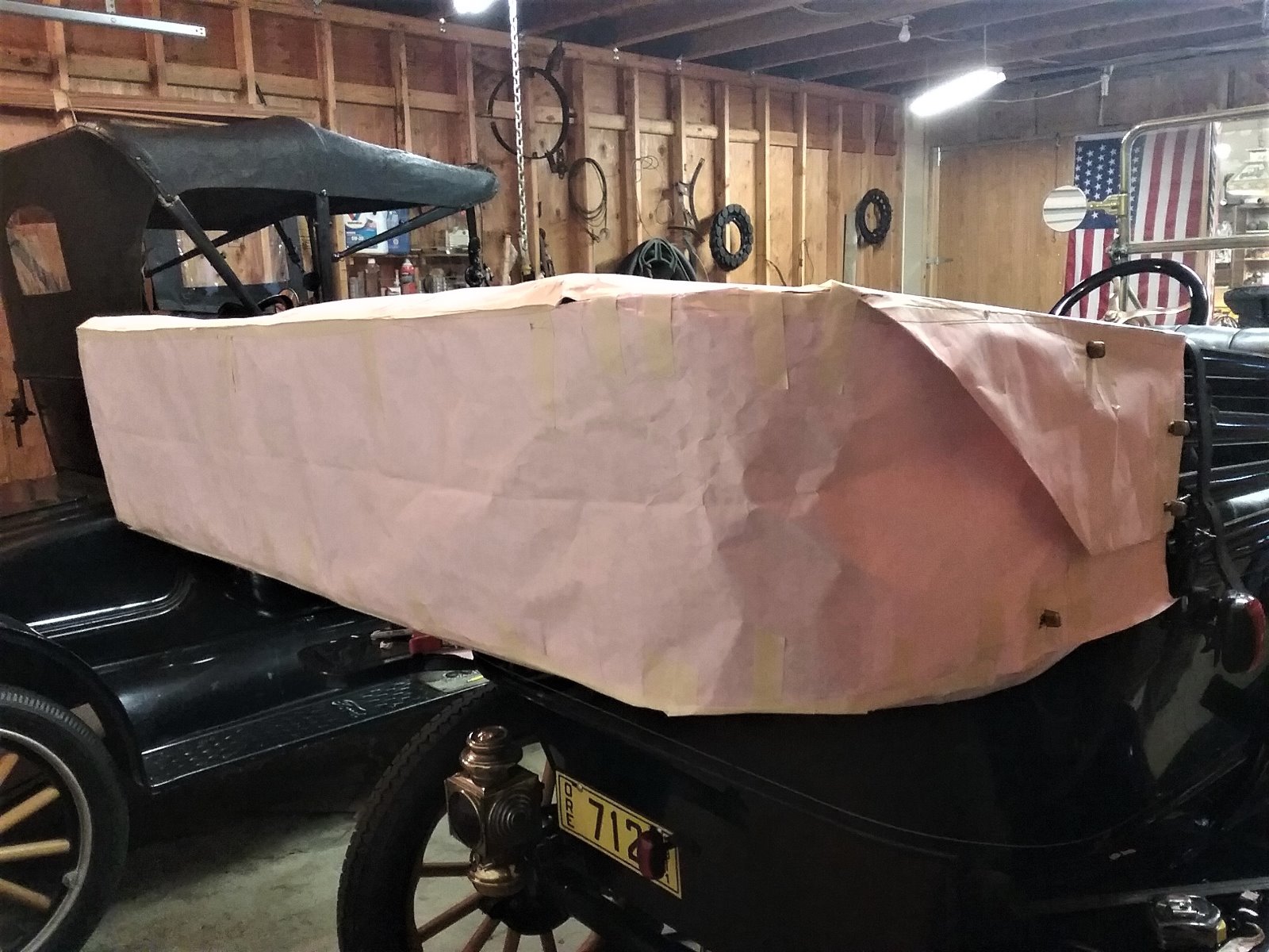 I've been working on a pattern for a top cover for my 1911 touring. Since they were not a factory item, but were available aftermarket, I am taking some creative liberties. The cover is held in place by the Murphy fasteners on the top sockets that hold the side curtains in place. After I finish the pattern, I will send it off to Mike at Classtique.