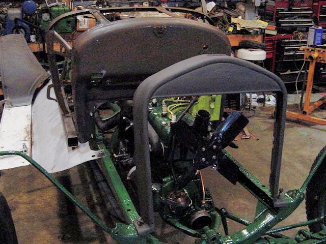 I can't put into words how many hours I have in this frame work but it is now painted and finished ,ready for the cowl sheet metal to be repaired and installed. It is just stored on the chassis, I am thinking it will be easier to install the sheet metal cowl and fuel tank and etc while it is on the table frame when I get those parts ready.