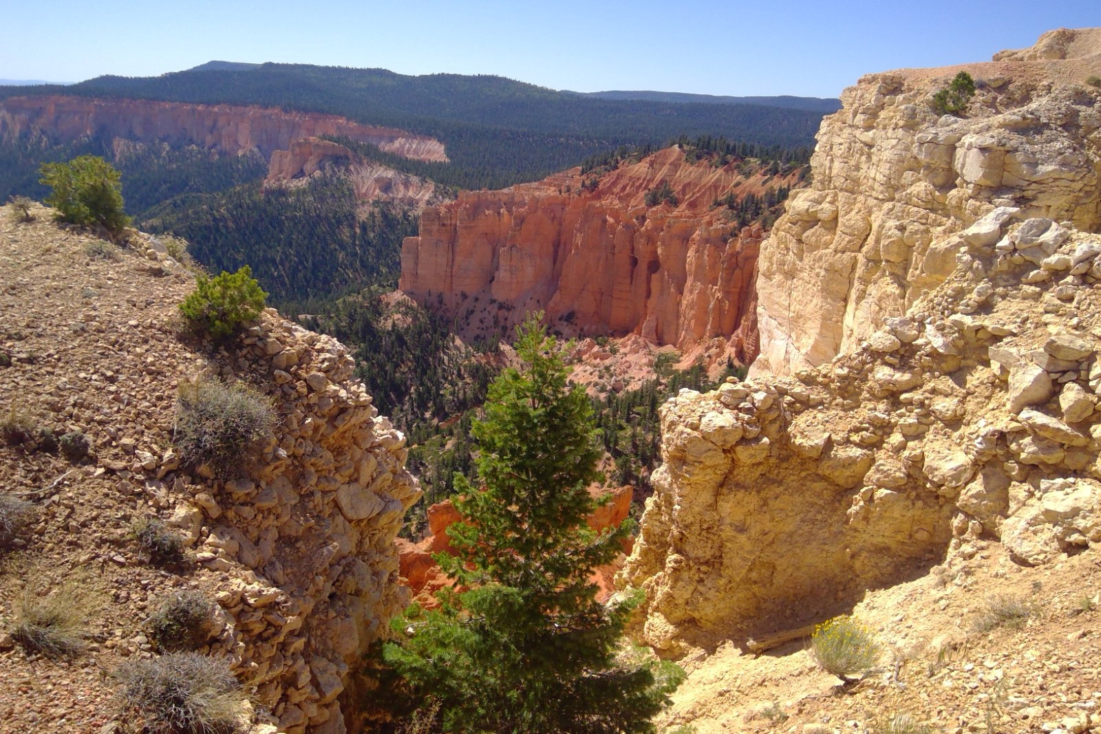 The difference between the south rim and the north rim averages about 1200 feet. The highest point on the south rim, Grandview Point, is at 7400 feet. Imperial Point, on the north rim, is at 8800 feet. This is why the south rim vegetation is dominated by junipers and piñon pines, and the north rim has a lot of ponderosa forest. From the north or the south, the canyon is an amazing sight.