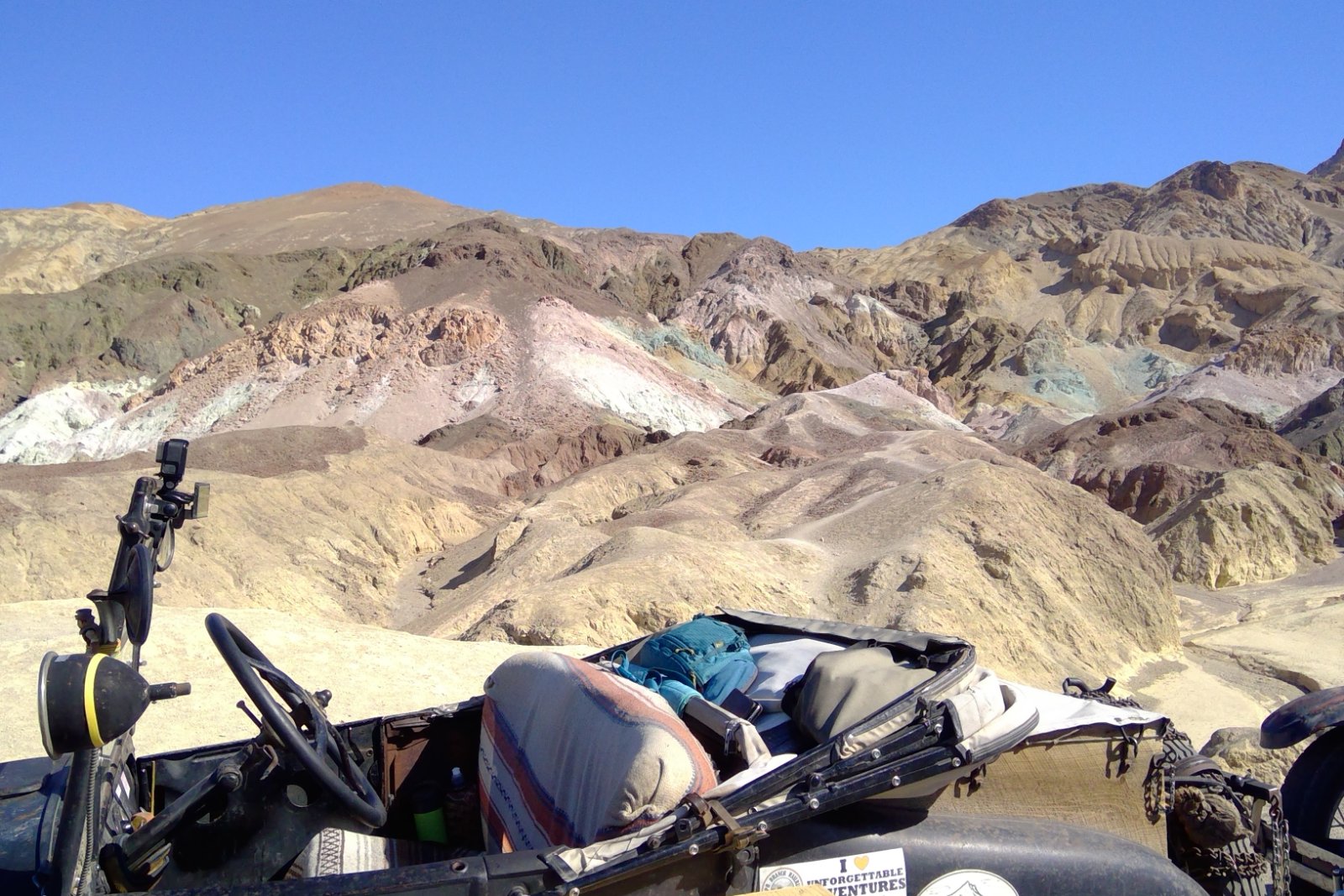 We wanted to beat the heat and the traffic so we hit the road at sun up, It always amazes me how hot it can be during the day and cold at night, we beat the heat, it was cold when we set out. We were worried about holding up traffic going up Daylight Pass, it is steep and winding with few places to pass. We beat the traffic as well. We were headed to Rhyolite, a ghost town in Nevada that is a cool place to visit, they have a very strange outdoor museum. Then we headed out the Titus Canyon road through the Grapvine Mountains back into Death Valley. It is a 27 mile long one way road that is often closed due to flash flooding. We stopped at the top of the mountain and had lunch before heading down into the canyon, the landscape changes again and again, it is amazing and beautiful scenery. The narrow areas of the canyon have to be experienced to believe how awesome it is. It was a 100 mile trip and and great day.