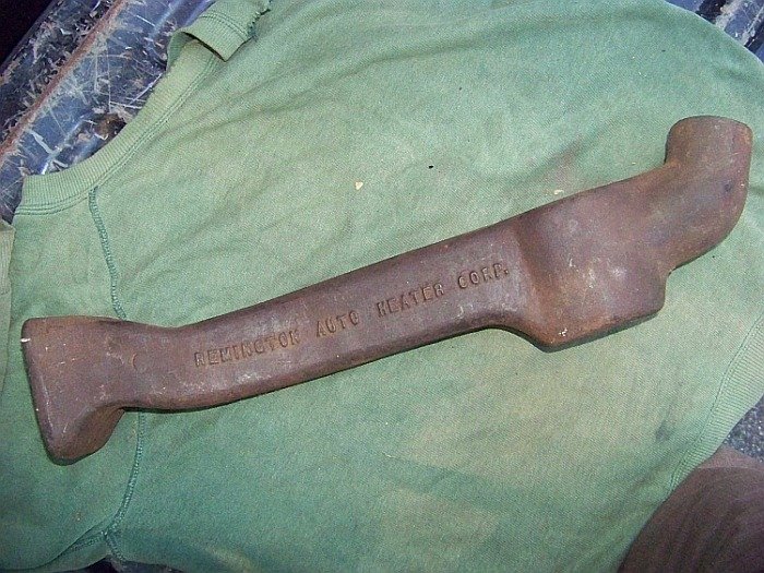 This exhaust manifold heater shroud needs to leave my shelf for a new home. I have no idea what engine it is for. It is not for any Ford that I am familiar with. It looks to fit onto an exhaust manifold on the left side of the engine, given the orientation of the cast in letters. I like to think that one of you will know what this will fit to. Someone could be pleased and warmed to have it.
