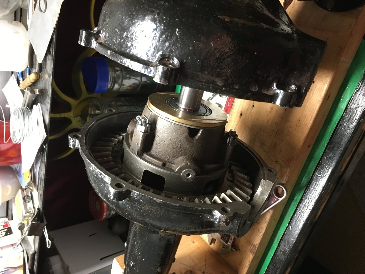 I'm disassembling two rear ends to make a good one for my car. It looks like this bearing sleeve is probably original. The upper surface is worn through and the "V" split is closed. My sleeve removal tool was not useful in this case. It took a hammer, chisel and vice grips to get this out.