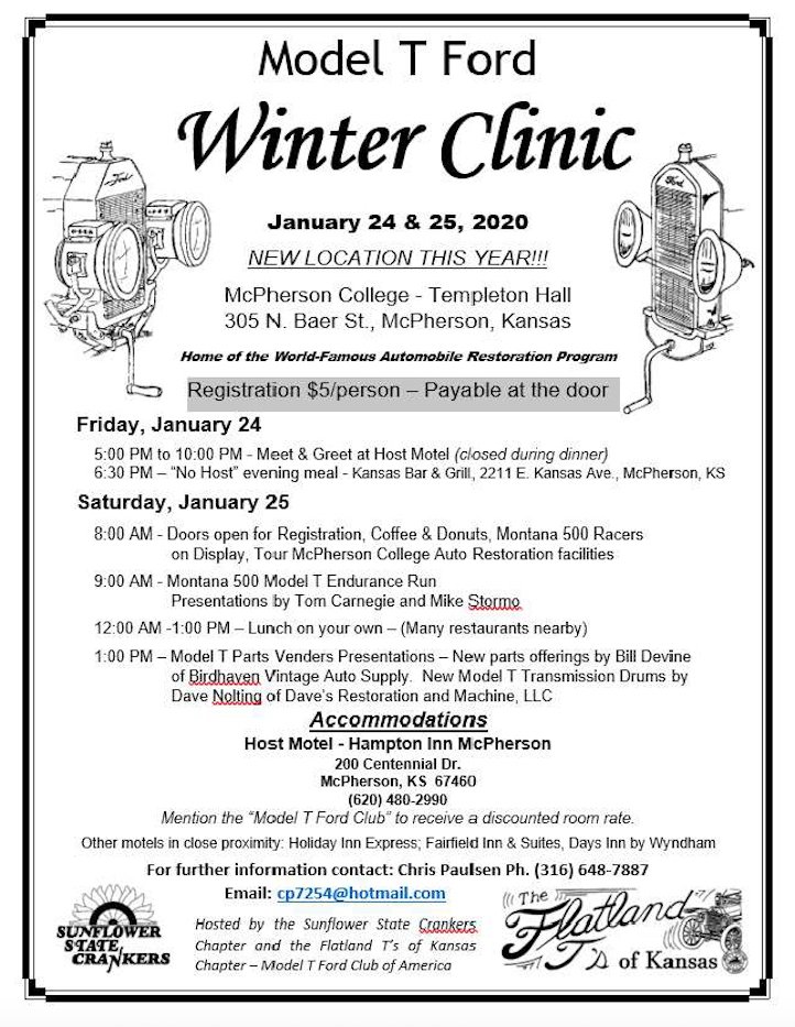 In addition, we've got 2 Montana 500 cars, and 3 Model T's that are owned by McPherson College students that will be on display. Plus the 15 or so college-owned cars that the students are working on.