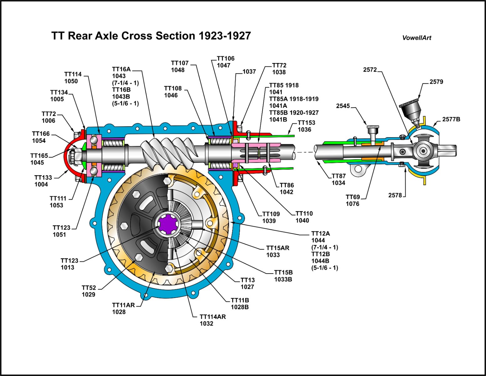 I have these too, in fact I colored one of the Cross Sections already...but what these don't show is what the parts actually look like...these are not Ford assembly drawings, meaning they were never used to assemble the TT rear axle, they are book illustrations intended to explain what the parts are, but rarely show how they actually look.