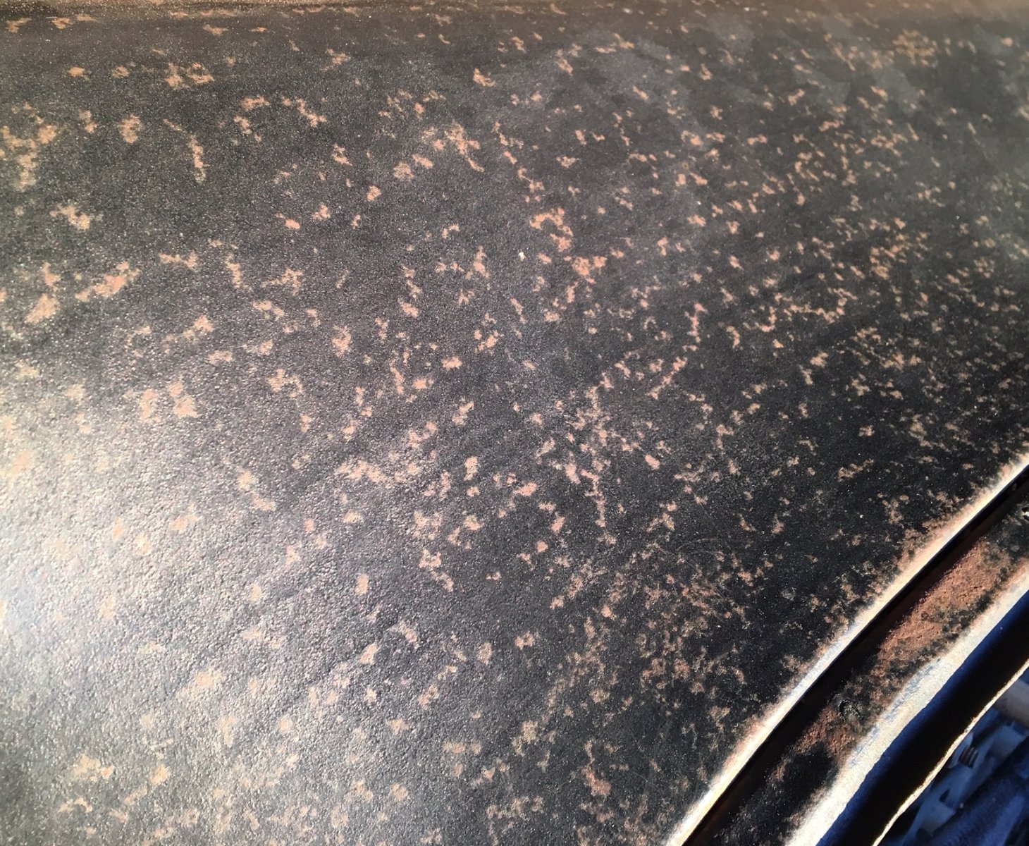 The original paint on these black era cars seems to "bloom" rust spots through the black paint...which ends up giving it a freckled appearance in places. In other places, the red-oxide colored primer will be the dominant finish. The car that Dan posted a photo of above is showing this as well.