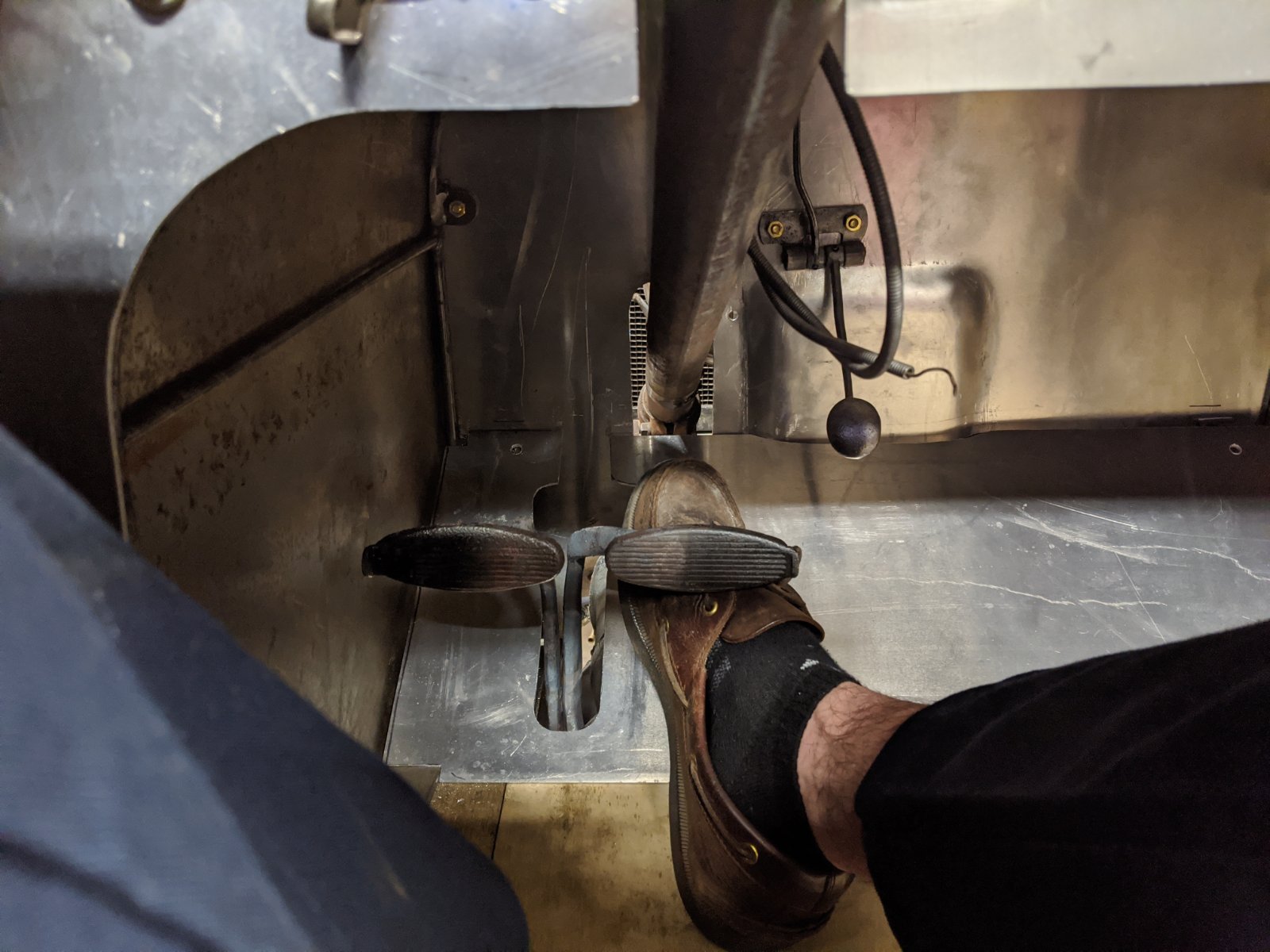 I made a floor board and mounted my throttle pedal to the firewall. I used a sheet of aluminum that I used for the firewall and other doodads.