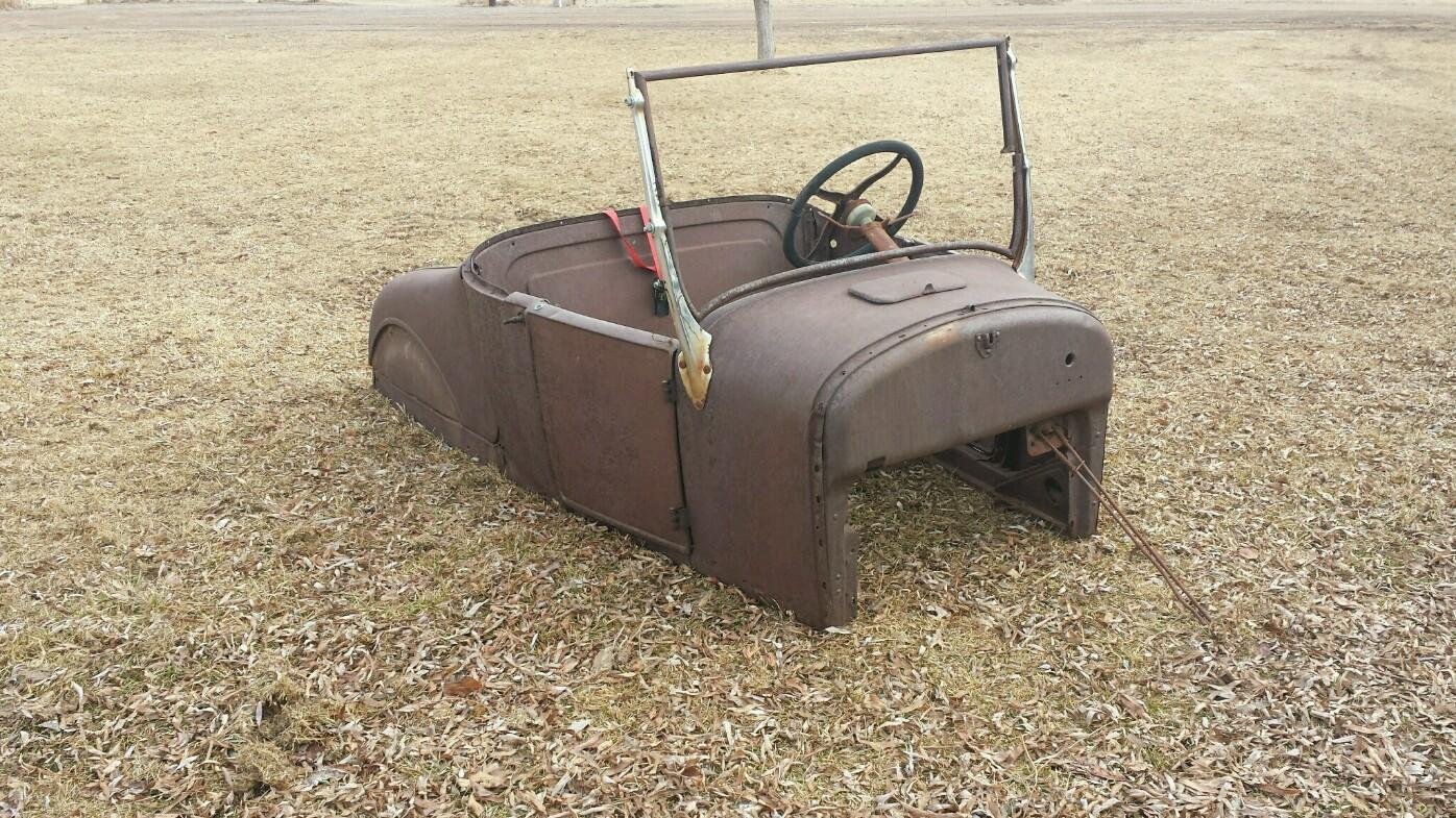 I have what I have always thought to be a 27 roadster body. I have been looking for a trunk or deck lid for it . All the one I find are to long. Mine measures 34 1/2 x 25 All the ones I have found are 34 1/2 x 34 1/2 . Any ideas ?? Was it a rumble seat ?
