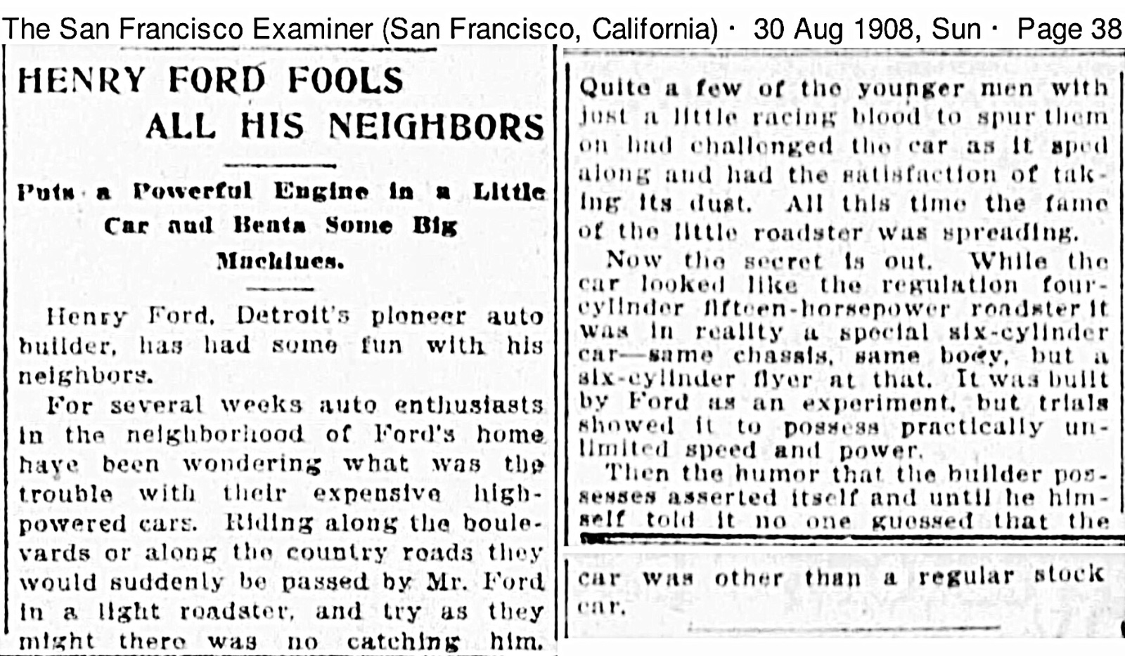 This was followed by newspaper accounts in August about Ford and his six cylinder runabout: