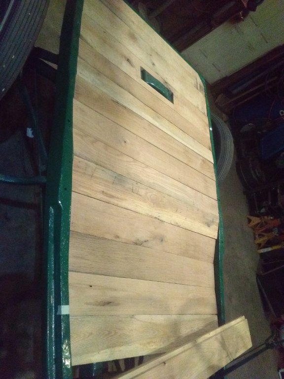 I had a stack of white oak lumber dad and me had cut back in 1995 that I was going to use on my 1 ton T truck project for a flat bed.Well,it twisted warped and etc,and plus I found the dump bed,and the rest is history, but that lumber was still stacked up behind the shop. I decided to use it for this project since I needed short peices and could deal with twisted and warped wood that way.