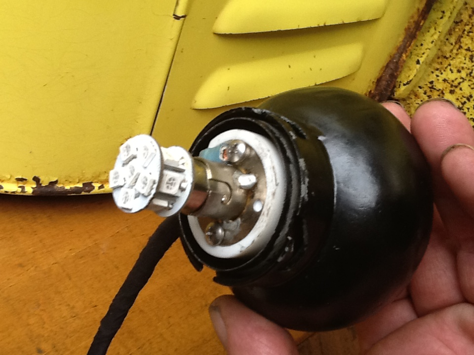 I made these some time ago, to convert my side lamps to blinkers with LEDs, took a block of i think nylon and made it the same height as the burner assembly, that way the tank holds it in place, the wires go out the slot where the fegulator knob normaly goes, you don't have to butcher a good sidelight and you can convert back to kerosene in about two seconds, only thing is you have to find a way to make the wires look inconspicuous (did i spell that right ??)