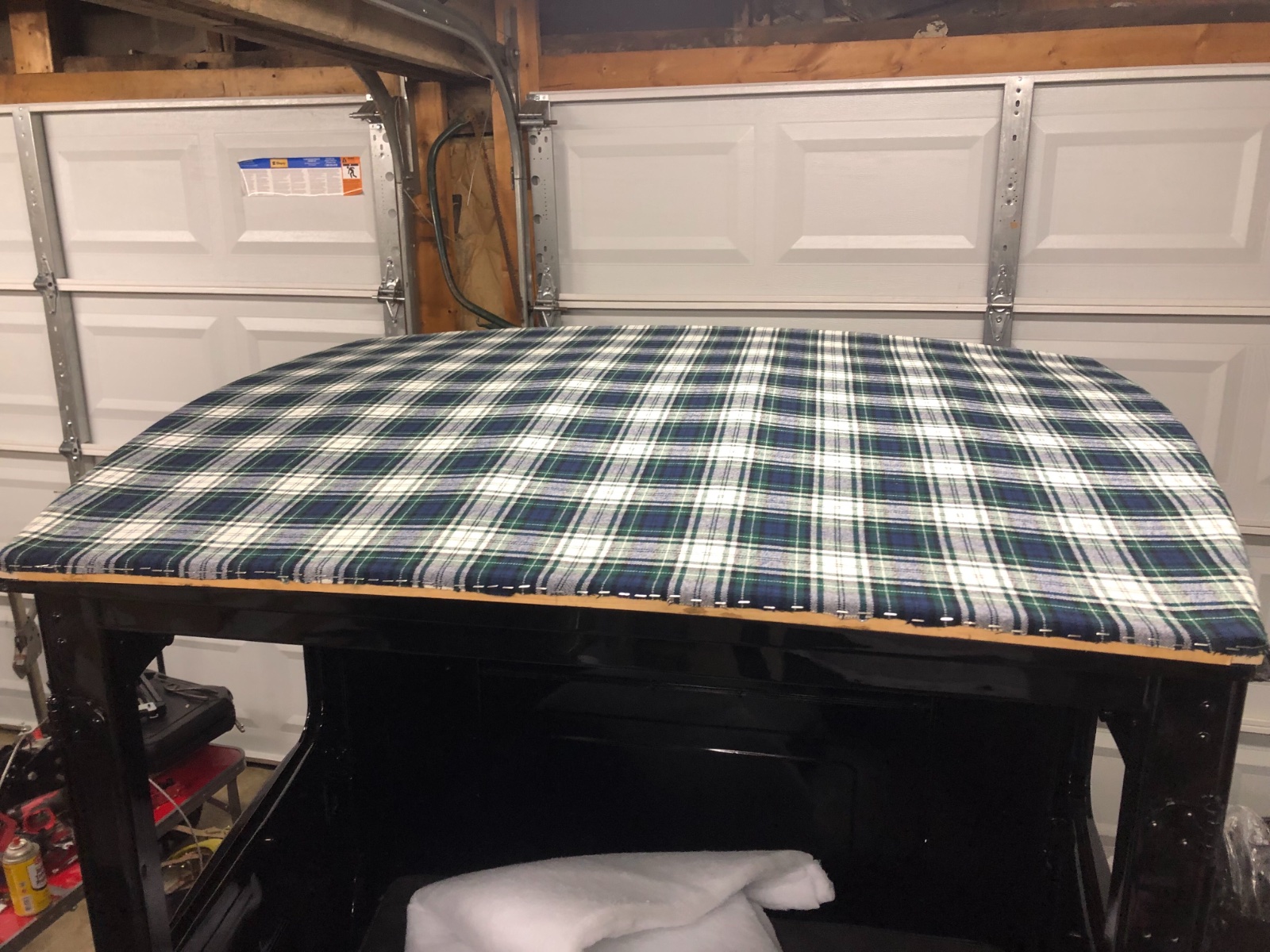 I have seen very little to no complete information/ instructions or pictures for that matter posted about installing the top wood and top for a 25-27 CLosed Cab TT Truck. So here we go. I’ve been working on mine for the last few weeks but made some major head way last night with the top cover. No the base material isn’t the stock muslin material but it’s just as strong and it’s my truck and I didn’t want to look up at black all the time! I’ll post what I have then keep updating on this thread as the project progresses. Some pictures will be sideways but that’s what I’ve got. Any bright enlightenments are welcome.