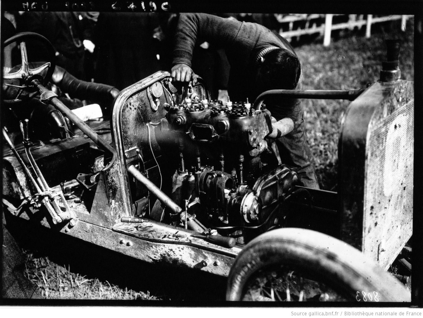 Coupe des voiturettes à Boulogne sur Mer : le moteur de l'Hispano Suiza de Zuccarelli : [photographie de presse] / Agence Meurisse