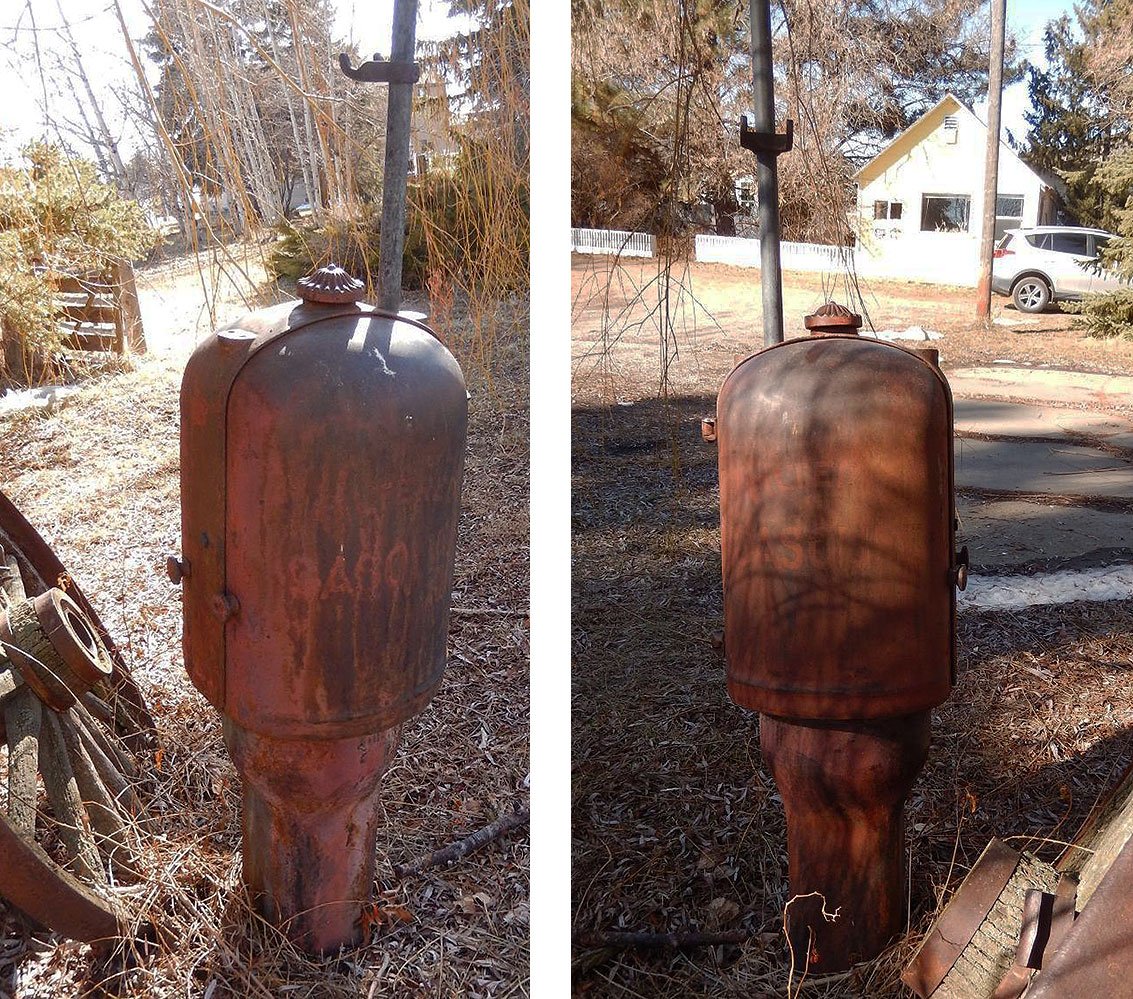 G&B (Gilbert & Barker) model T8 or T88 curb side gas pump. About 1917 or 18.