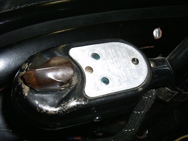 To "sorta" hide the switch, I used a rocker switch for an electric winch for an ATV and mounded it on a bracket, just in front of the left arm rest. The rocker of the switch had "in" and "out" labels which looked like crap, so I made a small brass plate, and stamped it with "L" and "R" and glued it on the rocker of the switch to cover the in & out.