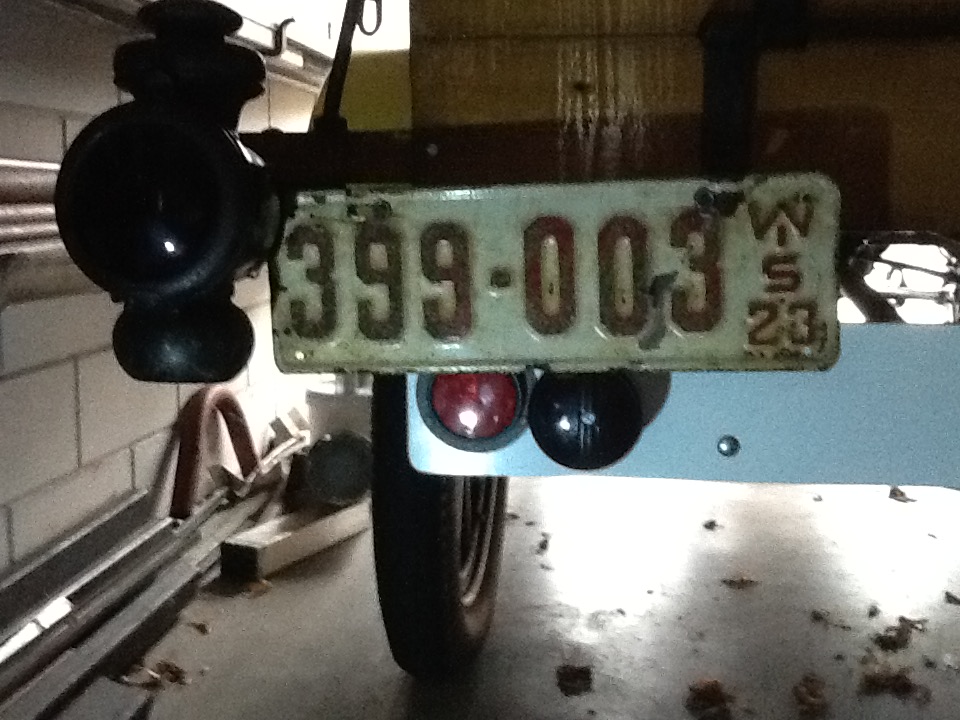 1925 Wisconsin license plate. Wisconsin apparently liked to be thrifty, plates were different widths, depending on how many characters.