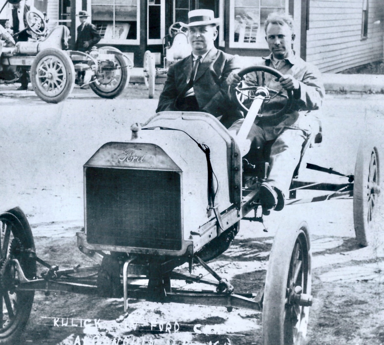 There are reasons I believe the photo showing Frank Kulick seated in a racer with the false tank on the back of the firewall. One is the positioning of the motor. M—III has drawings for a fan, while M and M-I (the largest racer motors) didn’t have a fan. That allowed those two motors to be pushed farther forward. This photo shows the 410 cubic motor in the racer at The Henry Ford. The M-III didn’t compete at Algonquin and the ensuing track racing in Chicago: