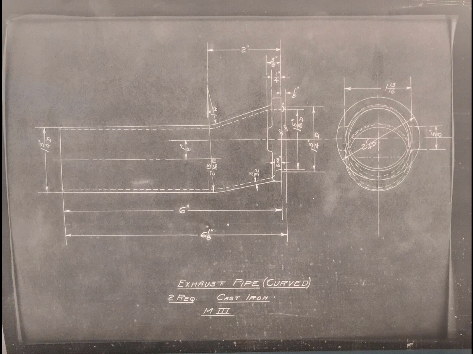 Anyway, the point being, the exhaust must exit the false dashtank. #4 cylinder sits mostly behind the firewall, and is too close to consider running a header forward to exit the hood. Fortunately, we also have the exhaust pipe drawings for M-III. The drawings call for two bent and two straight pipes.