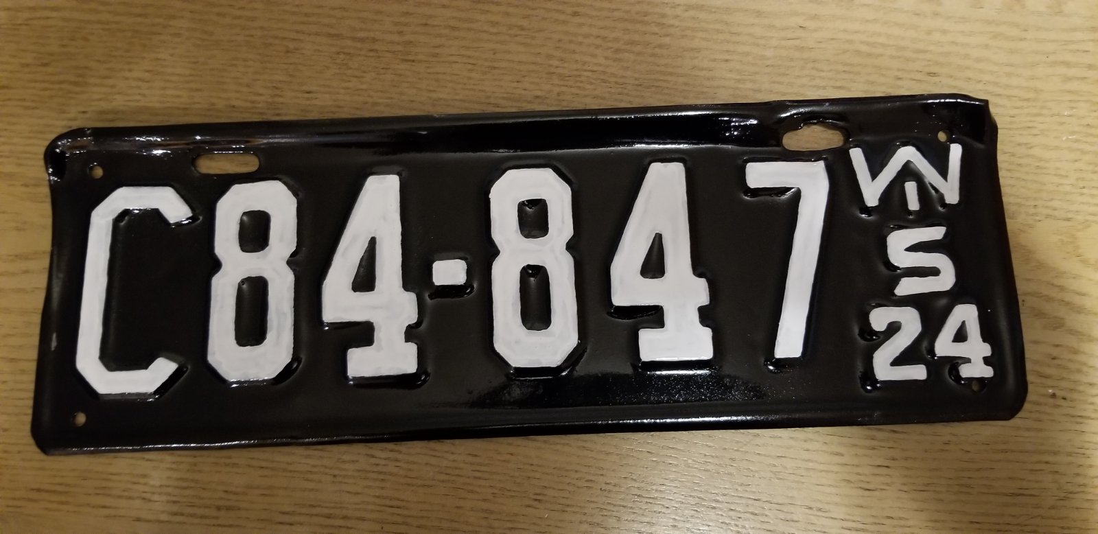 1925 Wisconsin license plate. Wisconsin apparently liked to be thrifty, plates were different widths, depending on how many characters.