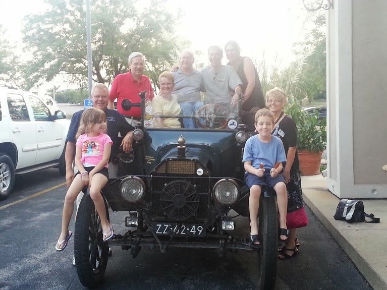 Rolf, in 2013 the Around the World Tour was in the United States and stopped in St. Louis. This is a picture of Dirk, Trudy and their Model T with some members of the St. Louis Model T Club. I'm in the red shirt and my twin grandchildren are on the fenders.