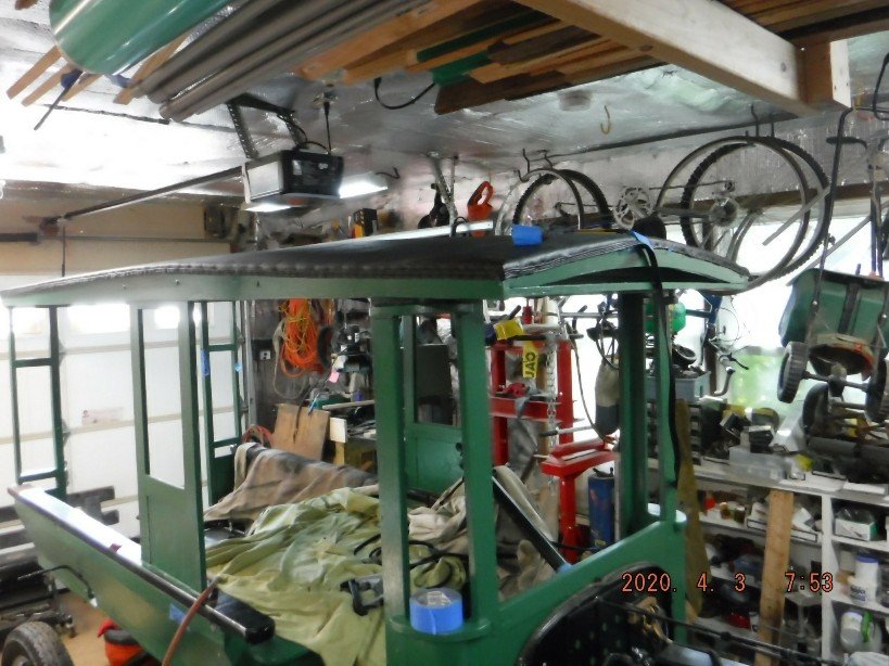 This is the canvas I used. It was attached at the front and stretched to the rear using some wood scraps and ratchet straps.