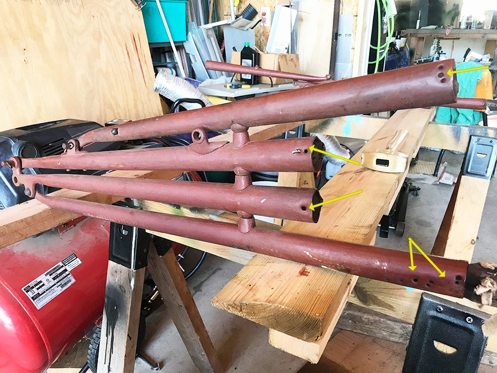 From the factory, there a single nail hole on the outboard side of each socket. These are from the large head, upholstery nails that were used to fasten the top material to the socket. As previously posted, eight large head upholstery nails were used on a touring - one upholstery nail per socket.