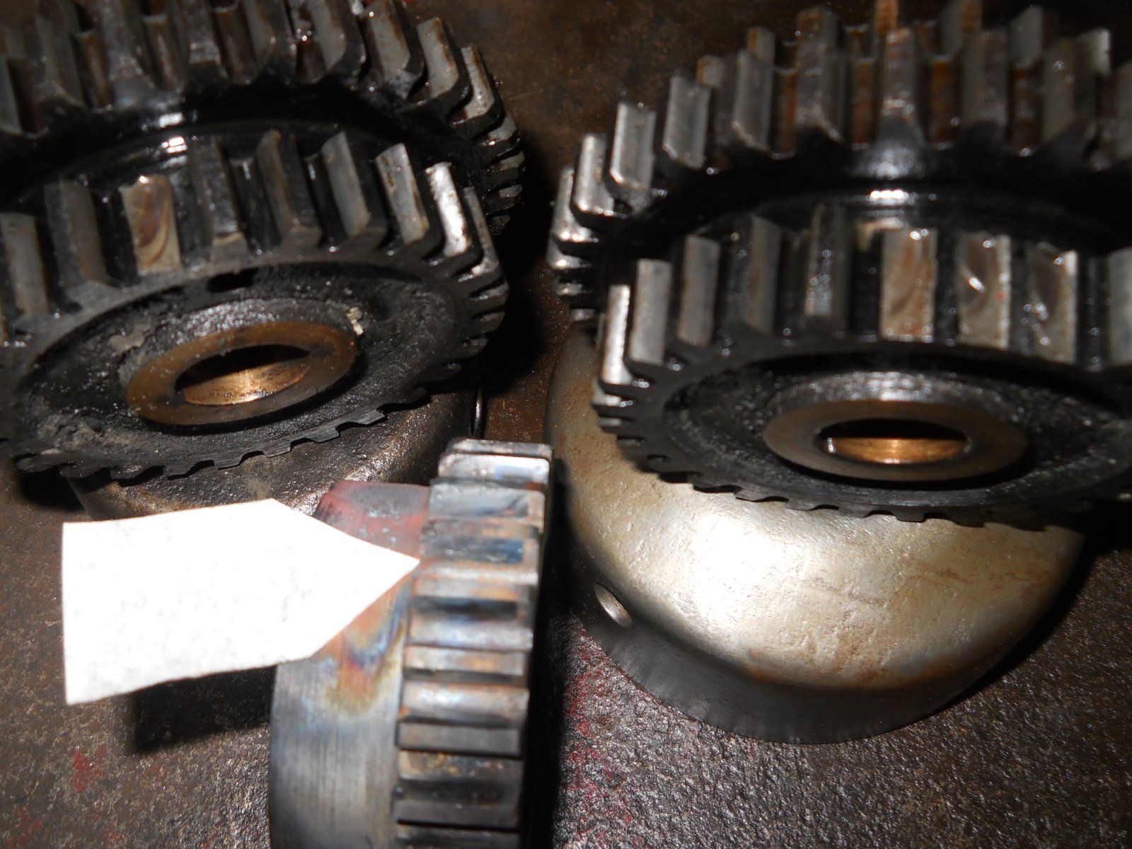 I do not know the age of the clip...strange thing is it was the only one in it...and the pressure plate bolts were not wired and loose...the clutch disc were about all sticking together and very blue...the truck was running fine the morning this happened went out after lunch and bang grind grind bang so I shut it down and pulled it back in shop with tractor...took engine out and down and found the part of shoe and no other steel pieces and four teeth broke from two triple gears and found I think a bent or cracked tooth on the driven gear and skinned up my coil ring just a little....odd to say the least...however all is cleaned and repaired just waiting on new clutch discs, gaskets etc...( I did find that the triple gears were very loose on shaft from worn bushings, new bushings a good gears fixed this.) I think sometime in past someone made mistakes putting this together...rl ( The dropped magnet a couple of years ago was much worse)