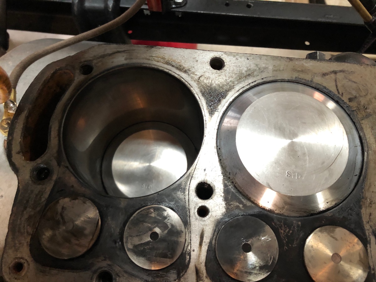 I have had my 11 engine started but it misses on numbers three and four. It came to me newly rebuilt. I had the coils rebuilt and the carb rebuilt. Shorting those cylinders out makes no noticeable in the rpm’s. I have switched coils around no difference. I thought it was an intake leak because spraying brake clean at the intake port slowed or stalled the engine. I have replaced the intake glands and copper rings twice. The glands are not too wide, the manifold is not being held out by the glands,and the manifolds are straight. After replacing the manifold gaskets the last time, same problem I now think I was getting a false reading by spraying thru the plastic nozzle, as it took a steady spray to affect the rpms. Today I took the head off and the numbers one and two pistons are black the problem numbers three and four are shiny and clean. At a loss here, Art