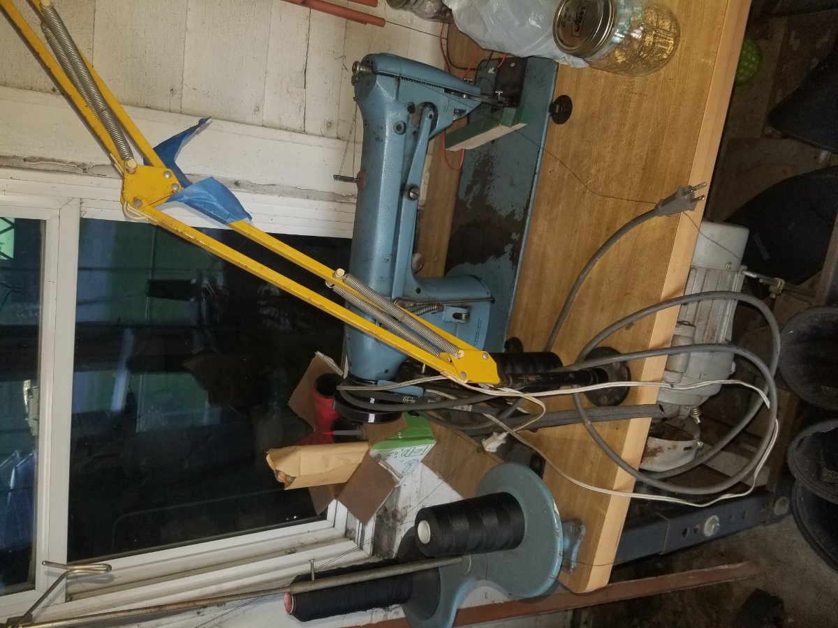 That's masking tape, it allows ole farts to sew a straight line ! (or somewhat straight line. Sorta) Picked this up today. Industrial sewing machine that handles those door panels like its a Twinkie on Mr. Husted's desk !!