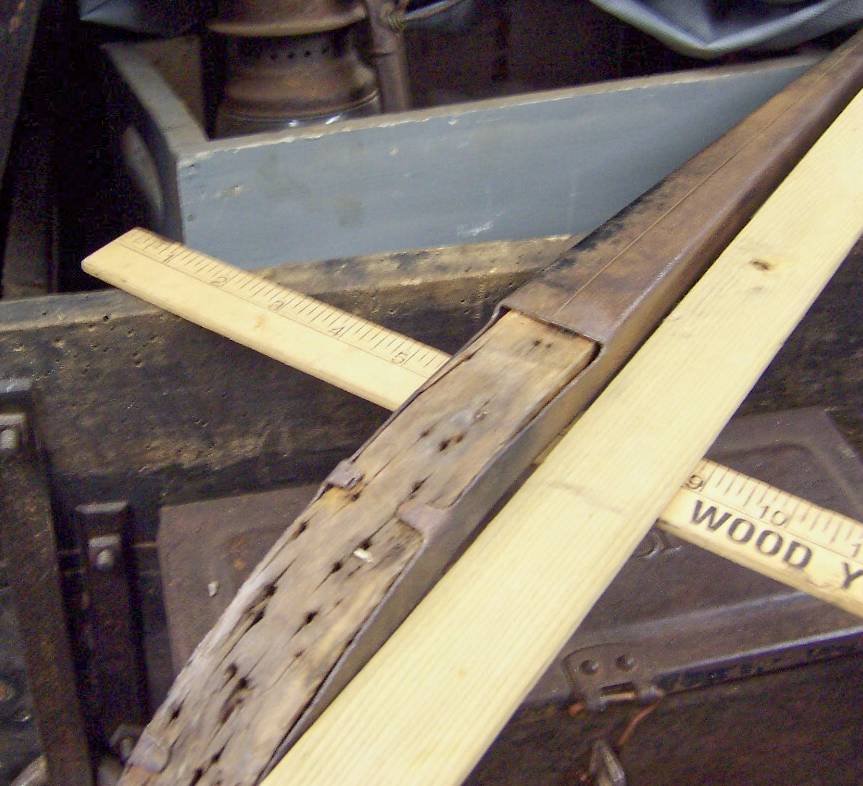 Those irons are the backbone of the top covering. Originally the wood was snug and tight in the corners and the wood bow riveted in the socket.