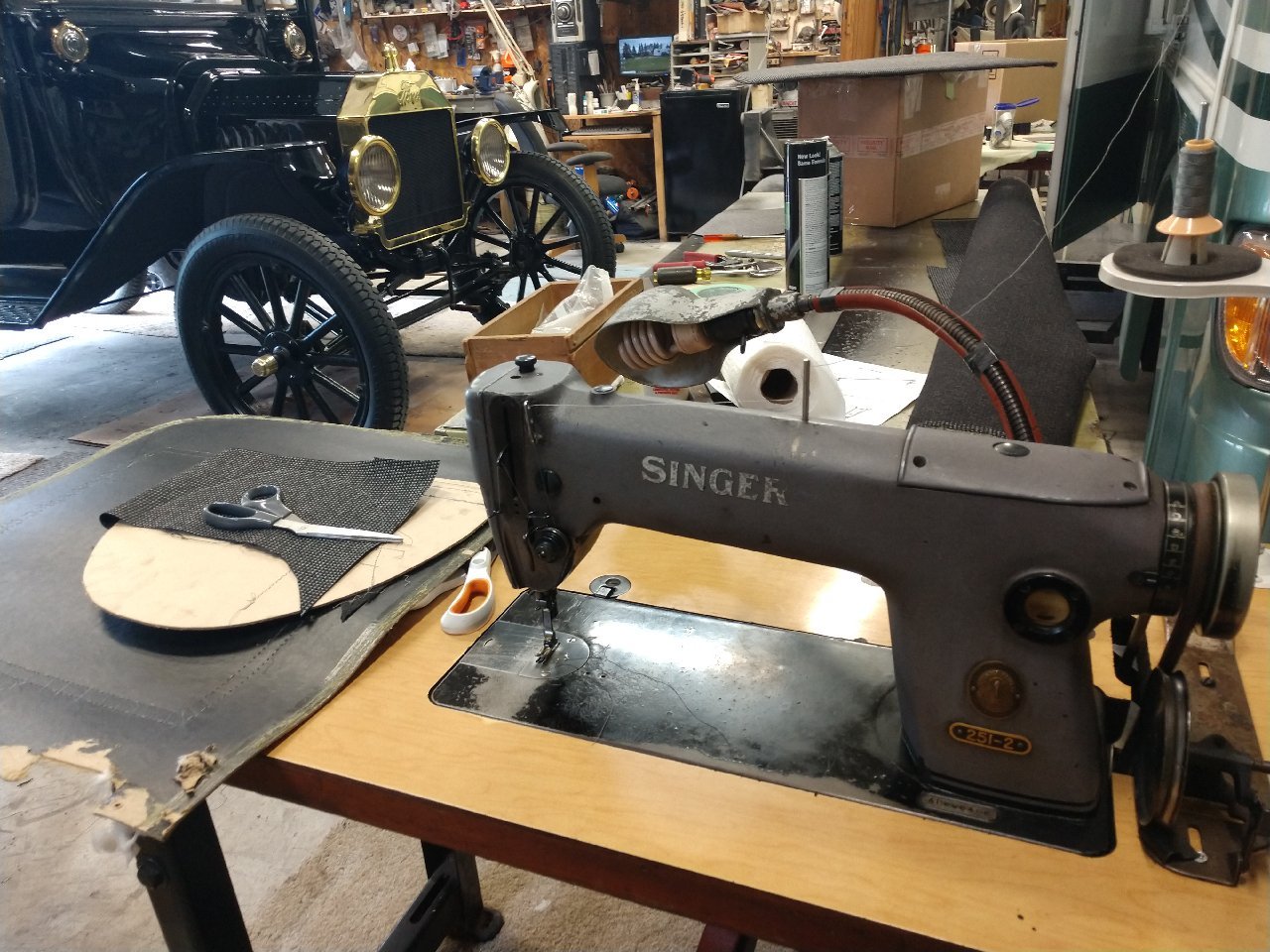 That's masking tape, it allows ole farts to sew a straight line ! (or somewhat straight line. Sorta) Picked this up today. Industrial sewing machine that handles those door panels like its a Twinkie on Mr. Husted's desk !!