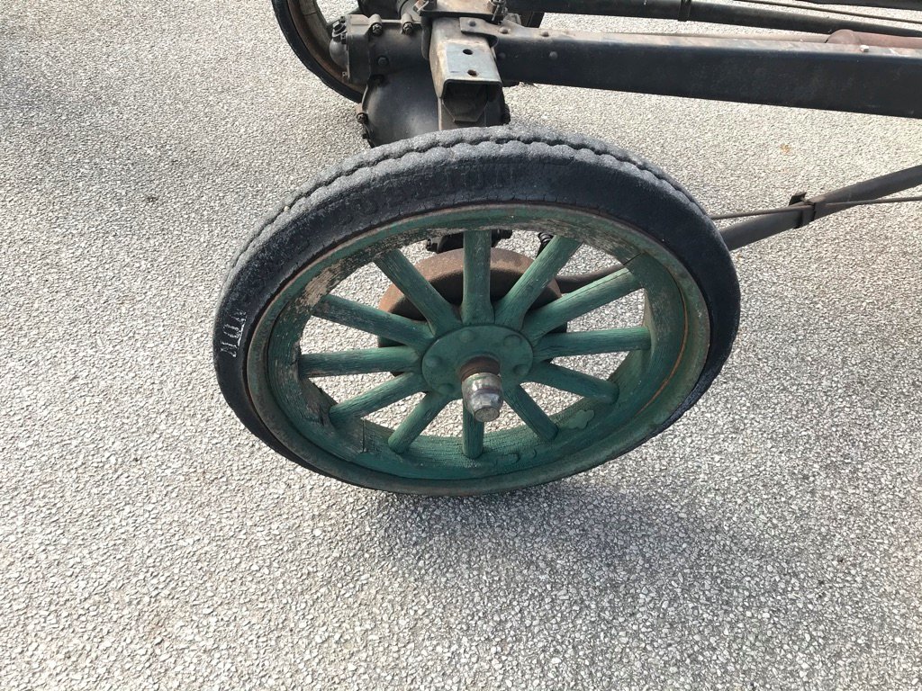 I pulled up the little plate and I think it's just a makers plate. I can't see a trip much longer than 4 miles to the little towns around my house, via some country roads. That said, the felloes / rim joint is pretty wonky and the wheel needs to be fixed before I do anything other than drive up and down the driveway.