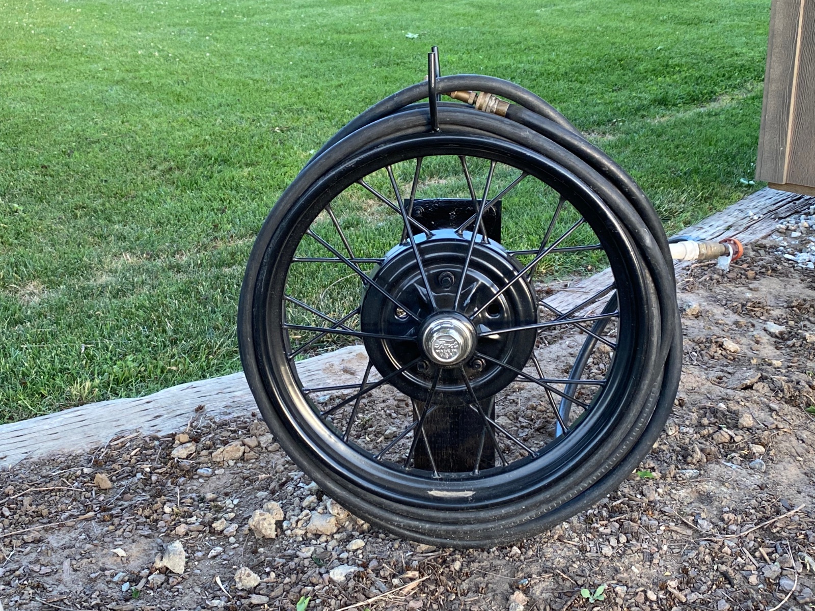 A hose reel can be made out of an old T or A wheel when it is damaged beyond use.