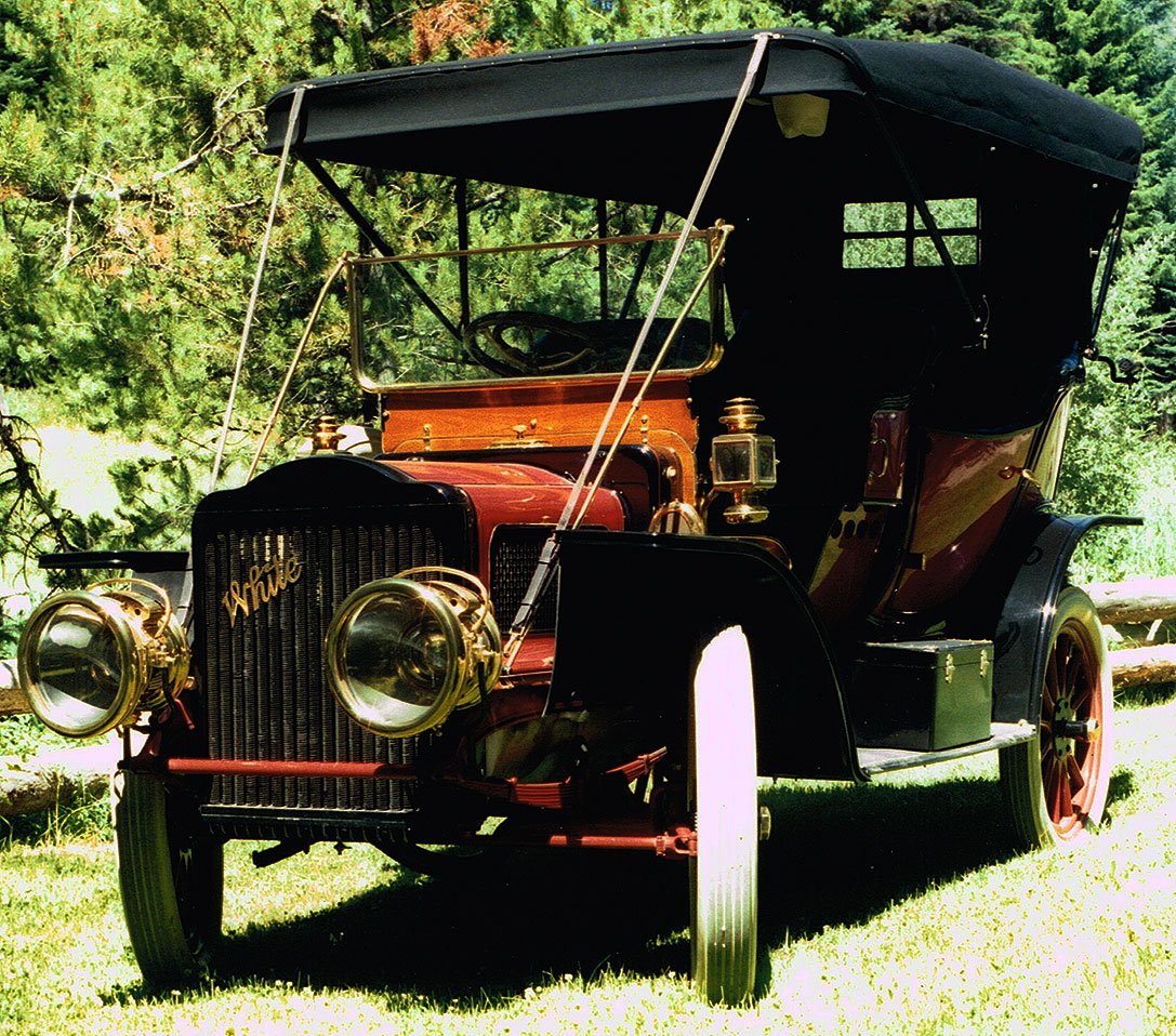 It is a White Steam Car. It had a two-cylinder 20 horsepower compound steam engine that has a 3x3.5-inch bore and a 5x3.5-inch stroke.