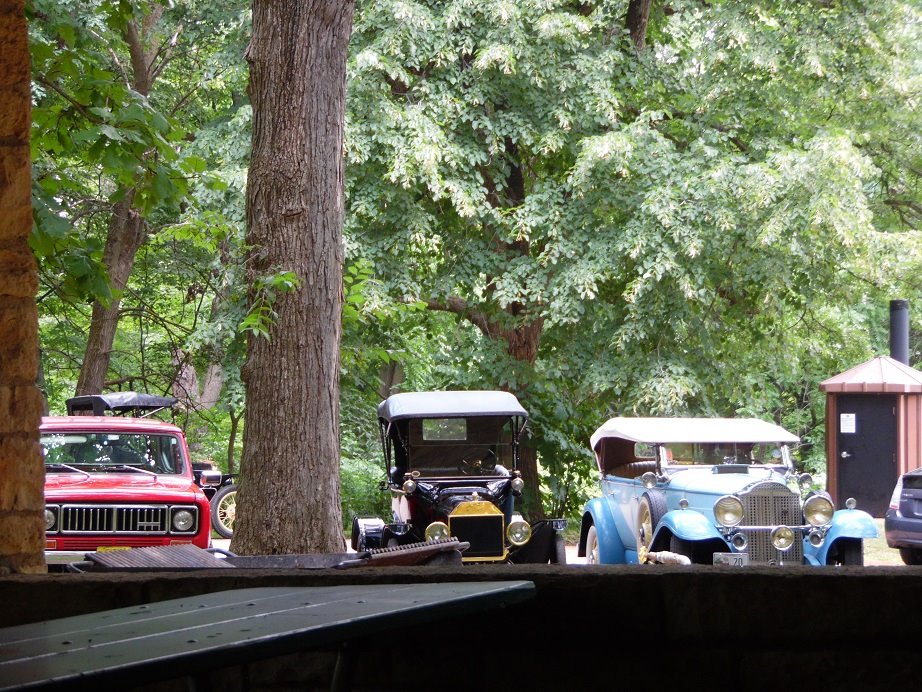 Everybody is familiar with Pikes Peak in Colorado. For those of you who think Illinois is flat as a pancake, I want you to know, here in Kane County, IL., we have our vary own "Johnson's Mound" which is the highest point in Kane Co. and rises to an astounding elevation of 867 feet above sea level! This is about 200 feet above the surrounding corn fields, so it is certainly a site to behold! So take that, Colorado! On a clear day you can see all the way to DeKalb County. Well you could if there weren't so gosh darn many trees in the way. At any rate, this summer a group of my car crazed friends of all persuasions, have gotten together bi-weekly at the picnic shelter at the top of Johnson's Mound for a "Social Distancing - Self Picnic". On the first picnic I neglected to make sure my low band was properly adjusted, and so I need a little "help" getting to the top. Here are some photos from past picnics. My T is the one with the rope attached to the front axle. Most of the cars that show up are from a different decade. If you ask the man who owns the blue Packard, he will tell you how he purchased the car at 14 years old with savings from his paper route. He gave $700 dollars for it, which was the market rate at the time.