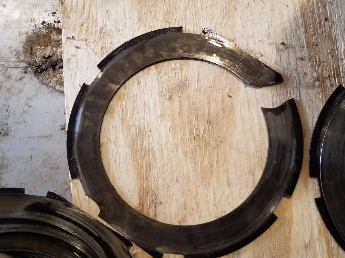 Showing pics of old brake drum: Outside of clutch basket: Inside of clutch basket: Over half the clutch disks were either cracked or broken. Ordering Watts disks from R.V. Anderson.