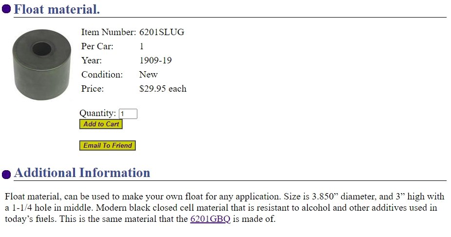 The other day I replaced the carburetor on a T with a rebuilt carb done by a dear deceased friend about 10 years ago. But gasoline wouldn’t stop pouring out of the inboard hole next to the choke shaft hole. I tapped and tapped hoping for just a stuck needle in the seat - to no avail. So I drained the carb and removed the Bowl recognizing a new float, needle and seat. Next I placed the float in a cup of water and it sunk.