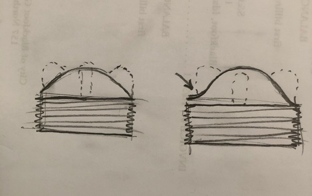 Back to my quest for the “authentic” 1913 cap, I see a difference between the pressed caps. Obviously a plated cap of needs dates from 1917 or later, and it would seem this discussion agrees that a rolled bottom edge indicates a cap from the latest production. My drawing is intended to point out the difference in pressed caps. The later ones all seem to have a shape like the drawing on the right with a return curve pointed to by the arrow.