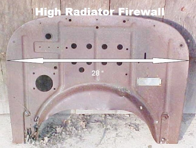 One way to tell the '23-'25 open car body only without a firewall is to measure the cowl height from the upper windshield ledge to the lower edge where the firewall mounts. The high radiator body cowls are much shorter than earlier low radiator cowls, i.e. the low radiator cowl is much steeper drop. Open Improved Cars ('26-'27) have very different cowls with gas filler door and gas tank in cowl.