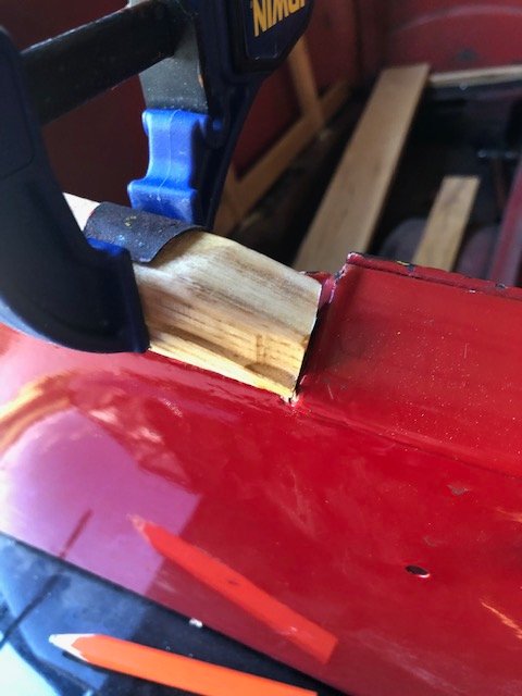 The wood was mounted originally with stove bolts, drill and countersink holes on the outside, through the wood tack strip, place the stove bolt ( flat head taper type) single slot, and then lock washers and hex nuts on the metal inside. You should find holes around the perimeter of the body edge for them.