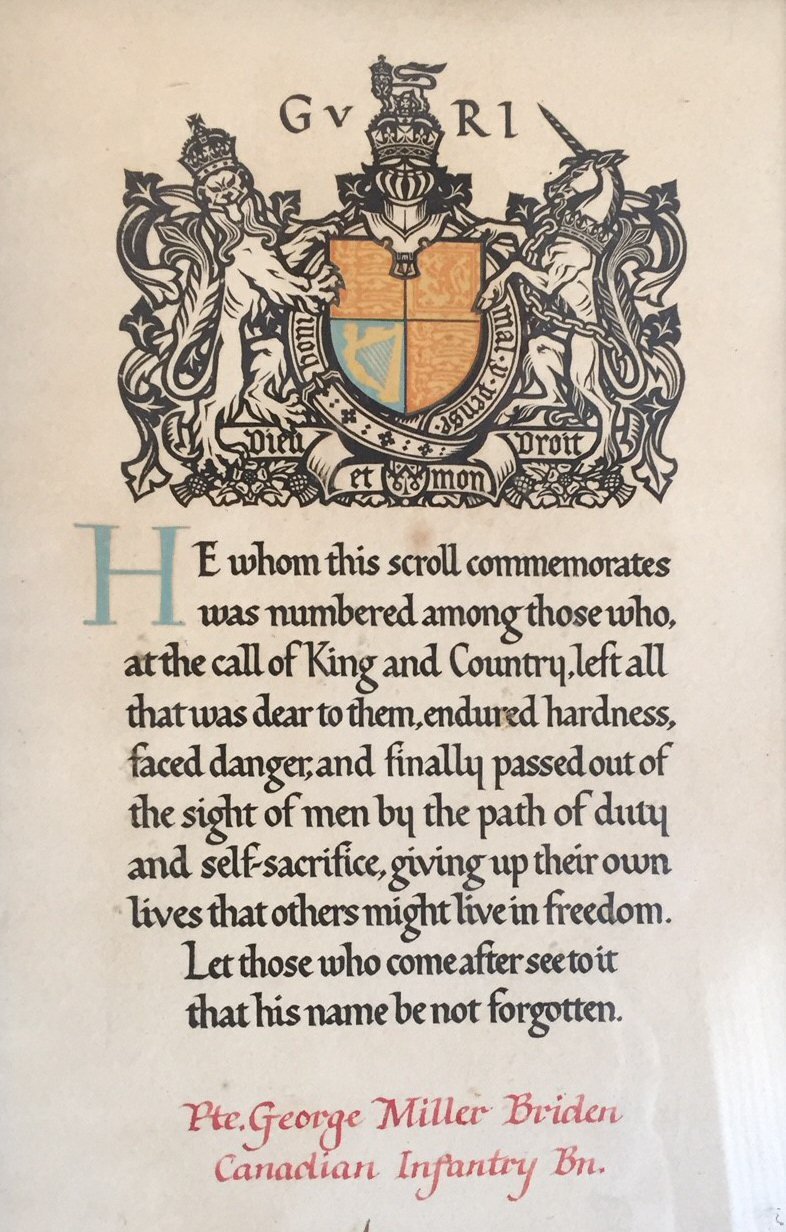 My grandmother's brother, Private George M. Briden, died April 10, 1917 of wounds suffered at Vimy Ridge.