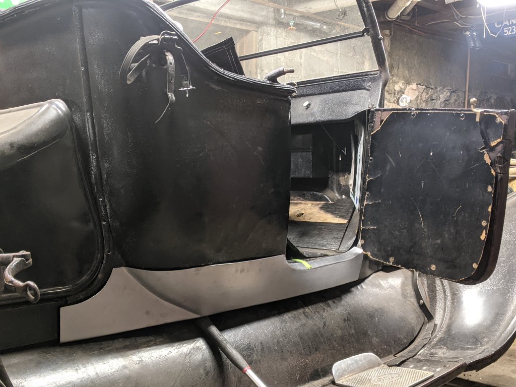 - Sill panels were made with a swager because the folded edge was necessarily not straight. This was followed with a light wheeling and fettling with flat and curved hammer + dolly to get the final shape and fit right.
