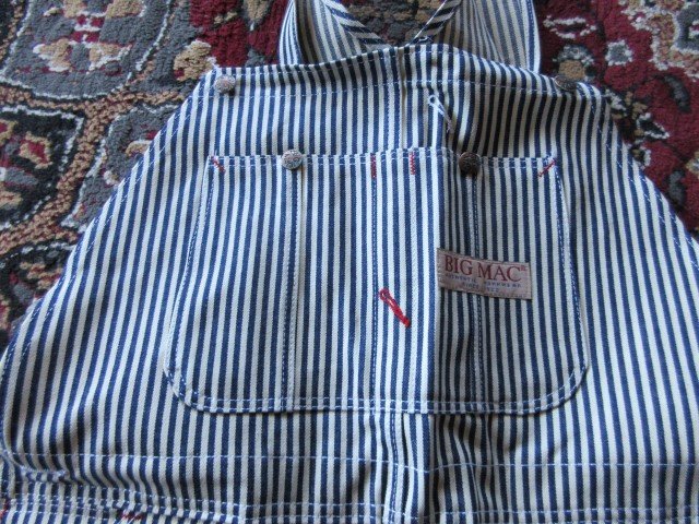 I have the best ever! New old stock Big Macs with old fashioned dark blue wide stripes. Heavy duty material. Still in the wrappers These are great and haven't been available for many years. $50.00 each plus $10.00 shipping. I have 2 pair. One is size 34 X 30 the other is size 56 X 32.