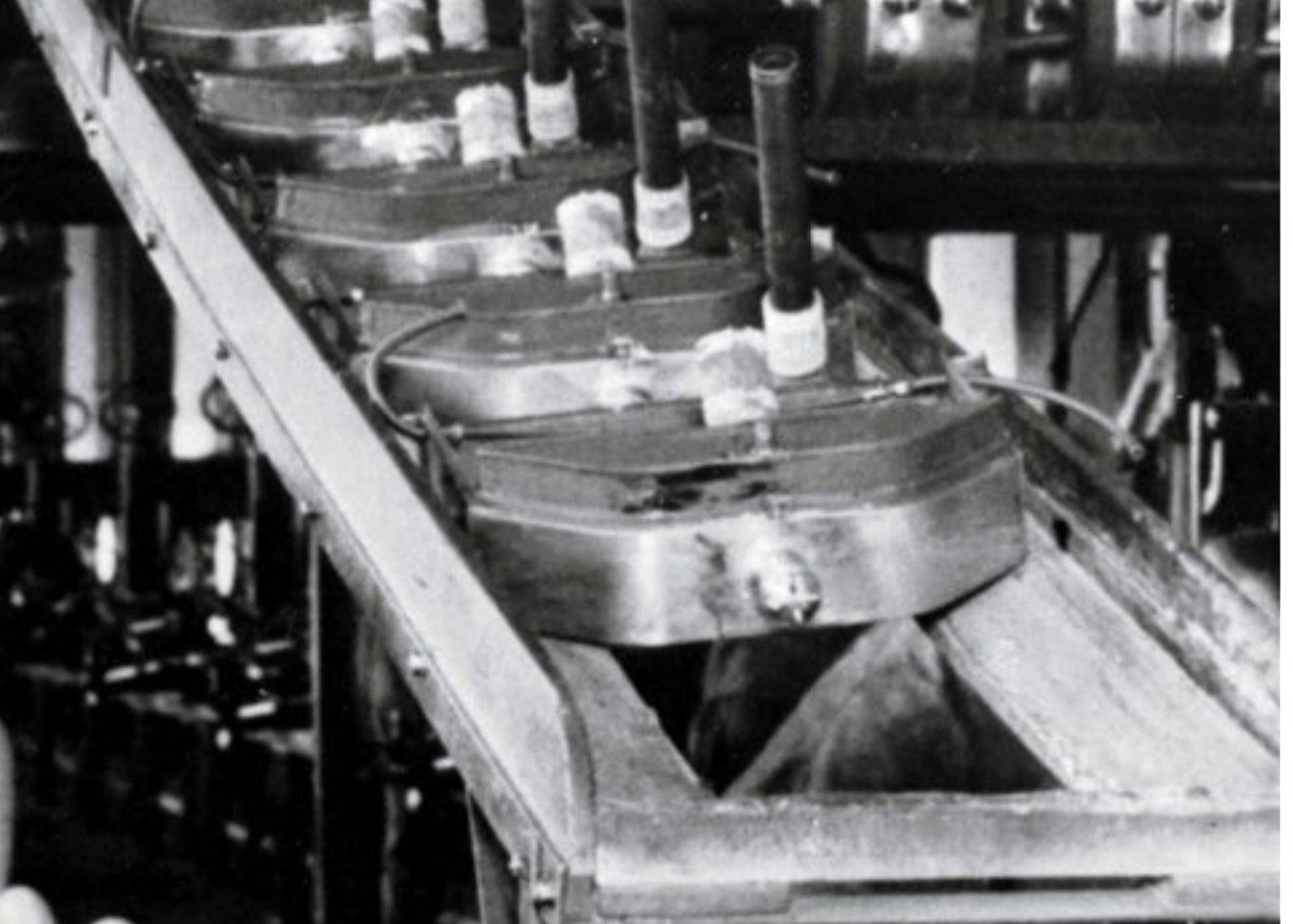 The photo below is on the assembly line and the little brass hose clamps sure look small. They installed the gas headlight hoses in the radiators before they came down to the line. I used clamps but I don't think they are really necessary if the hose is snug.
