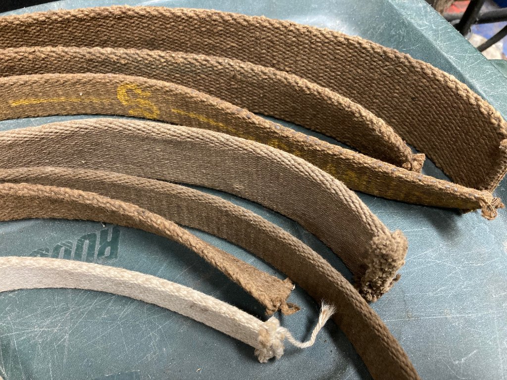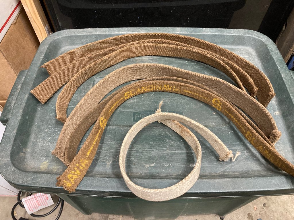 Only one band says Scandinavia on it, one set appears to be the same weave as the Scandinavia, they are all .170" to .200" thick, one set measures 23-1/2" long the others 22-1/2" long