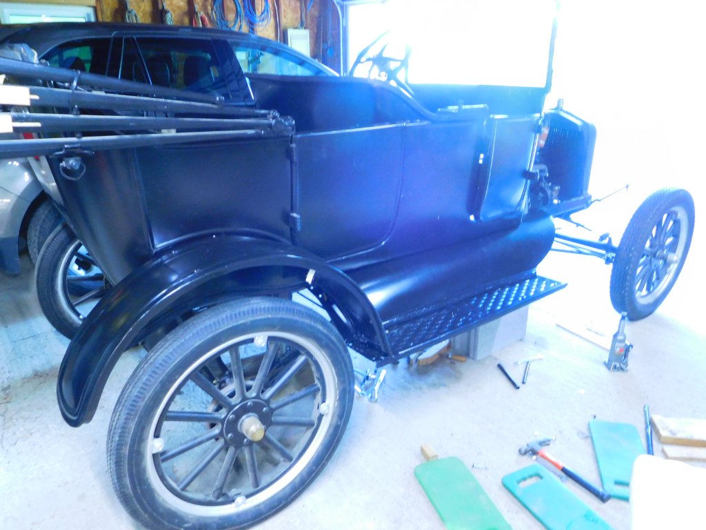 I spent about 5 days over a couple weeks getting two new aprons to play nice with 4 original fenders. I was not kidding on my first post that there is a reason why many "T"s end up with fenders that look like they are ready to head south with the geese.