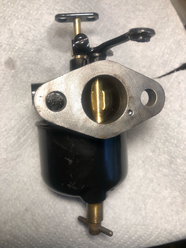 Completely disassembled and cleaned, passages sealed with set screws, new throttle and choke plates, float, needle and seat, spray nozzle, choke spring, reconditioned spray needle and test run.