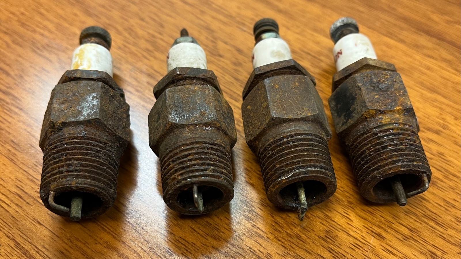 4 barn fresh, used early Champion X spark plugs with smooth insulators. 3 of them do NOT have “Pat Office” markings which I believe makes them pre-1915. The other one has the “Pat Office” markings.
