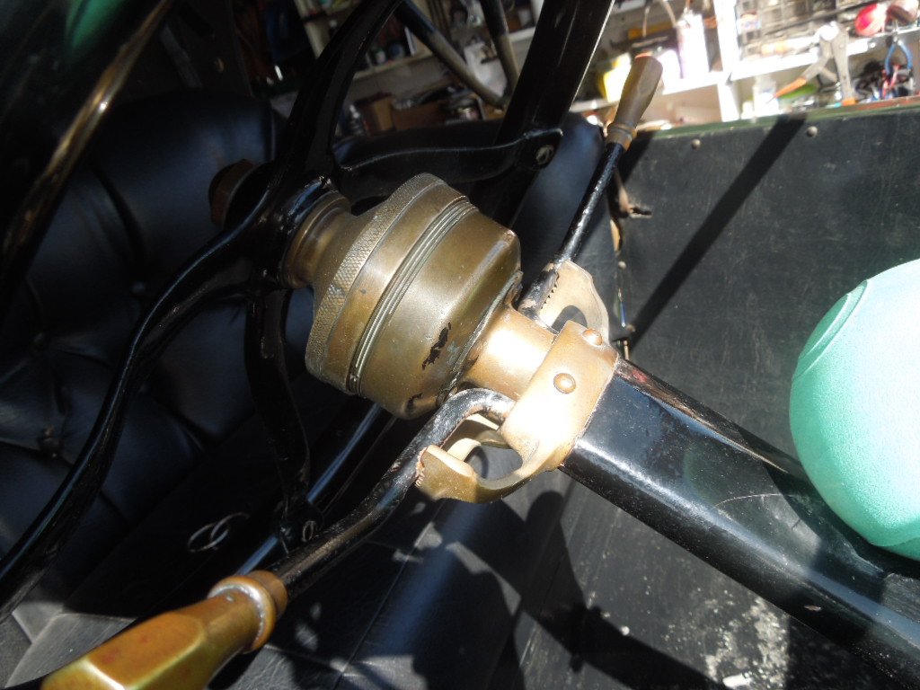 The wooden handles on the spark and throttle levers may be an indication that the column is earlier than 1913. The levers may be straight rods on the ends to take the hard rubber knobs used on early columns. Either that or some vandal cut off the original flattened ends.