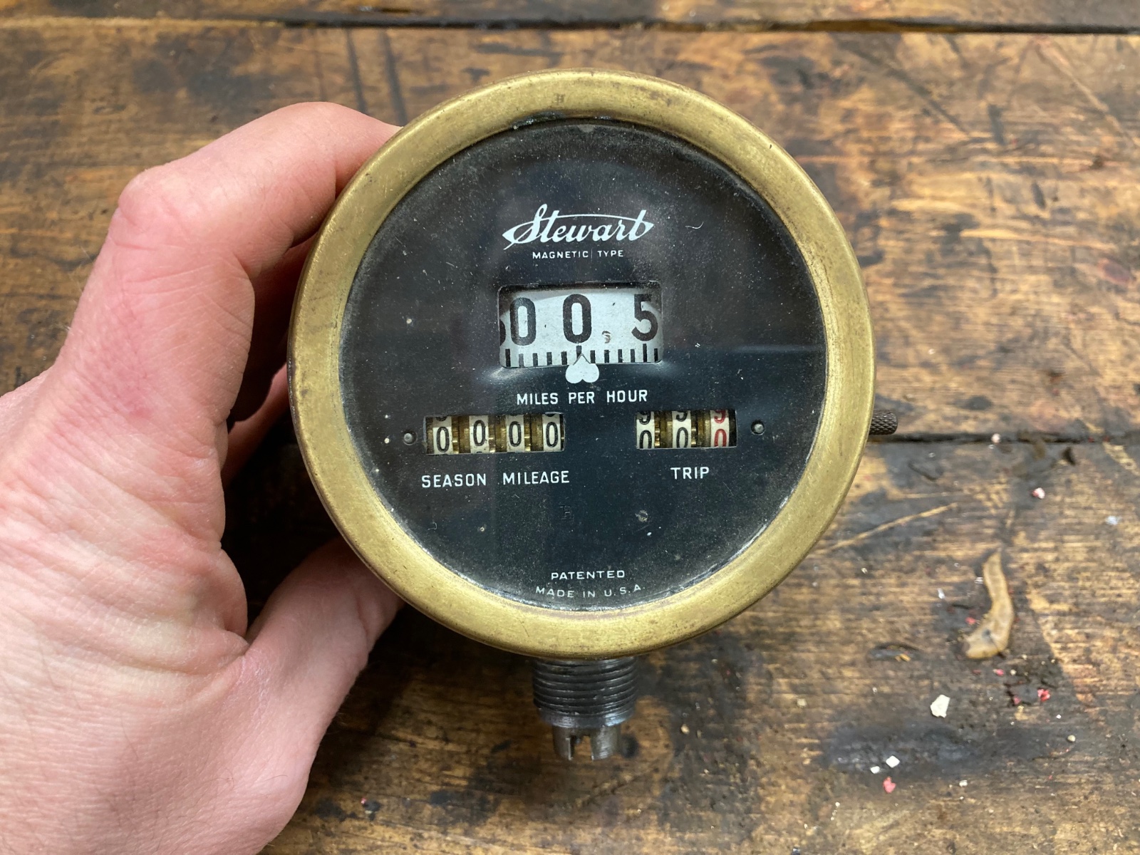 Stewart speedometer, brass rim, will need to be gone through. As-is $40 + shipping
